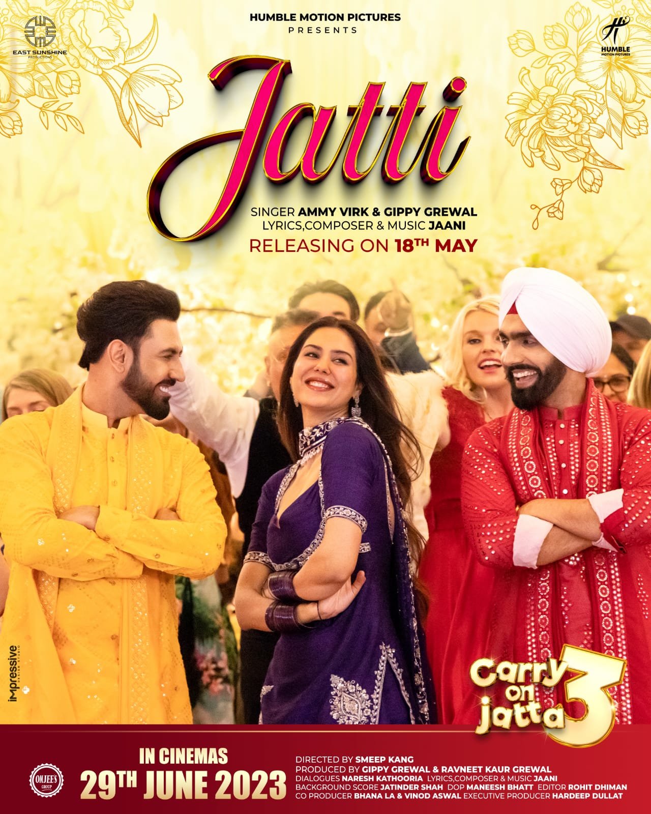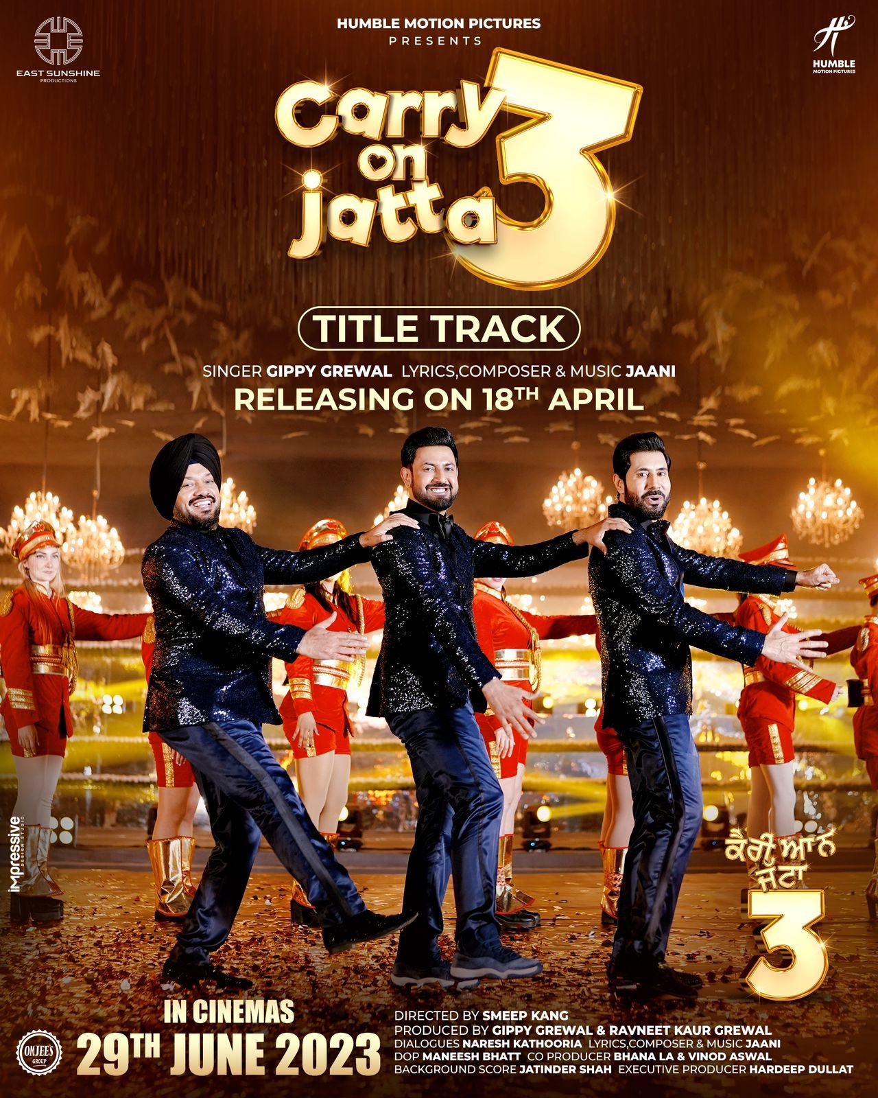 29 ਜੂਨ ਨੂੰ ਦੁਨੀਆਂ ਭਰ ਵਿਚ ਰਿਲੀਜ਼ ਹੋ ਰਹੀ “ਹੰਬਲ ਮੋਸ਼ਨ ਪਿਕਚਰਜ਼” ਦੀ ਪੇਸ਼ਕਸ਼ ਇਸ ਫ਼ਿਲਮ ਵਿਚ ਗਿੱਪੀ ਗਰੇਵਾਲ, ਗੁਰਪ੍ਰੀਤ ਘੁੱਗੀ, ਜਸਵਿੰਦਰ ਭੱਲਾ,ਬਿਨੂੰ ਢਿੱਲੋਂ,ਕਰਮਜੀਤ ਅਨਮੋਲ, ਸੋਨਮ ਬਾਜਵਾ, ਕਵਿਤਾ ਕੌਸ਼ਿਕ,ਰੁਪਿੰਦਰ ਰੂਪੀ,ਬੀ ਐਨ ਸ਼ਰਮਾ,ਹਰਬੀ ਸੰਘਾ,ਜੱਗੀ ਧੂਰੀ,ਨਸ਼ੀਰ ਚੁਨਿੰਟੀ ਤੇ ਸ਼ਿੰਦਾ ਗਰੇਵਾਲ ਨੇ ਅਹਿਮ ਕਿਰਦਾਰ ਨਿਭਾਏ ਹਨ। ਫ਼ਿਲਮ ਦਾ ਨਿਰਦੇਸ਼ਨ ਕਾਮੇਡੀ ਕਿੰਗ ਨਿਰਦੇਸ਼ਕ ਸਮੀਪ ਕੰਗ ਨੇ ਦਿੱਤਾ ਹੈ। ਫ਼ਿਲਮ ਦੀ ਕਹਾਣੀ, ਸਕਰੀਨ ਪਲੇਅ ਤੇ ਡਾਇਲਾਗ ਨਰੇਸ਼ ਕਥੂਰੀਆ ਨੇ ਲਿਖੇ ਹਨ ਤੇ ਗੀਤ- ਸੰਗੀਤ ਜਾਨੀ ਨੇ ਤਿਆਰ ਕੀਤਾ ਹੈ। ਜ਼ਿਕਰਯੋਗ ਹੈ ਕਿ ਫ਼ਿਲਮ ਦਾ ਟਾਇਟਲ ਗੀਤ, ਫਰਿਸ਼ਤੇ ਗੀਤ ਟੀਜ਼ਰ ਅਤੇ ਹੁਣੇ ਜਿਹੇ ਰਿਲੀਜ਼ ਹੋਇਆ ਗੀਤ “ਜੱਟੀ” ਜਿਸ ਵਿਚ ਗਿੱਪੀ ਗਰੇਵਾਲ ਦੇ ਨਾਲ ਐਮੀ ਵਿਰਕ ਵੀ ਨਜ਼ਰ ਆ ਰਿਹਾ ਹੈ ਦਰਸ਼ਕਾਂ ਦੀ ਬੇਹੱਦ ਪਸੰਦ ਬਣੇ ਹੋਏ ਹਨ, ਜਿਸ ਦਾ ਅੰਦਾਜ਼ਾ ਯੂਟੀਊਬ ਵਿਊਜ਼ ਤੋਂ ਲਾਇਆ ਜਾ ਸਕਦਾ ਹੈ। ਹੁਣ ਦਰਸ਼ਕਾਂ ਵਲੋਂ ਫ਼ਿਲਮ ਦੀ ਬੇਸਬਰੀ ਨਾਲ ਉਡੀਕ ਕੀਤੀ ਜਾ ਰਹੀ ਹੈ। ਯਕੀਨਣ ਪੰਜਾਬੀ ਸਿਨਮਾ ਇਤਿਹਾਸ ਵਿਚ “ਕੈਰੀ ਆਨ ਜੱਟਾ 3” ਇਸ ਸਾਲ ਲੀਡ ਕਰੇਗੀ।